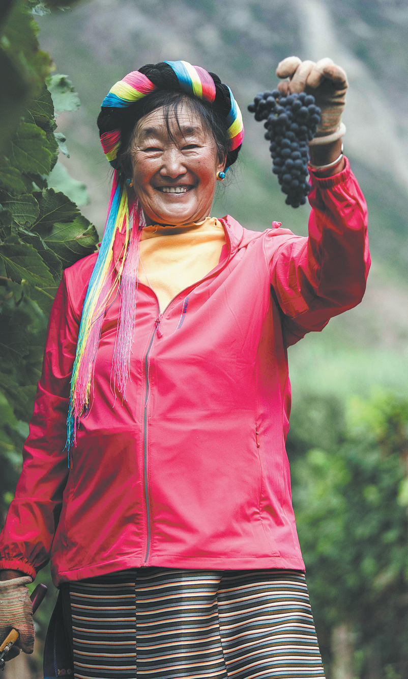 In the sun-drenched vineyards of Rizui village, nestled along the banks of the Lancang River in Dechen county, five young women move briskly between rows of ripened grapes. The harvest season has arrived, marking the culmination of a year's worth of labor and care.