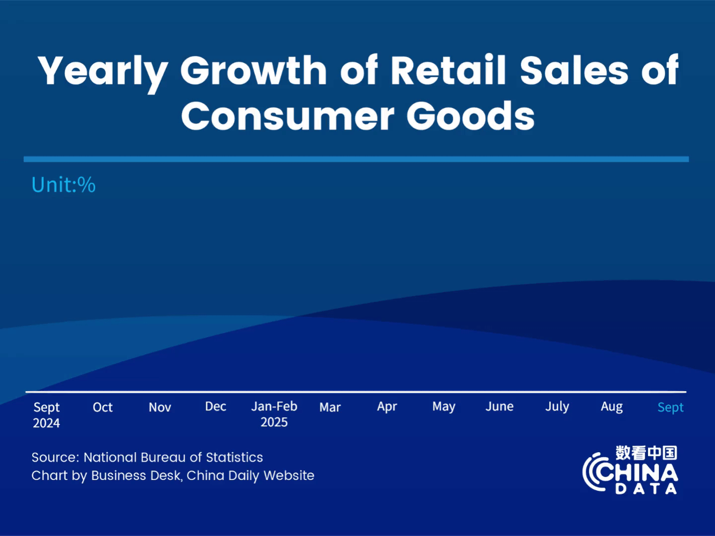 China's retail sales increased 3.0 percent year-on-year in September, the NBS said.