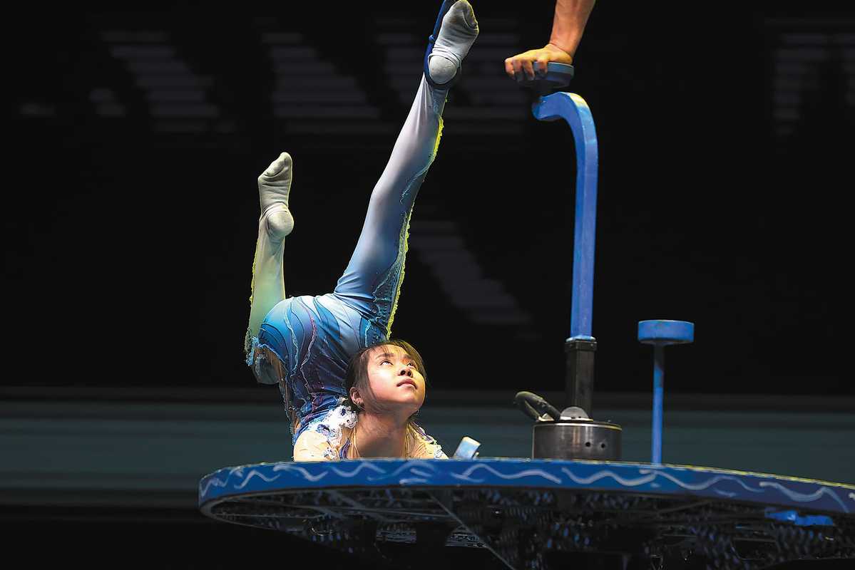 The rehearsal performance Tidal Bores Crest Dynamic Group Formation from a Hangzhou acrobatic group on Sept 30. WU XIAOHUI/CHINA DAILY