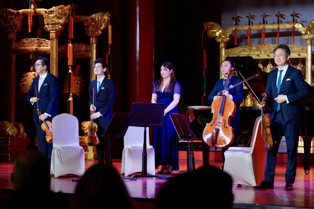 Pianist Helen Meng (middle) and the Shanghai Quartet.[Photo provided to chinadaily.com.cn]