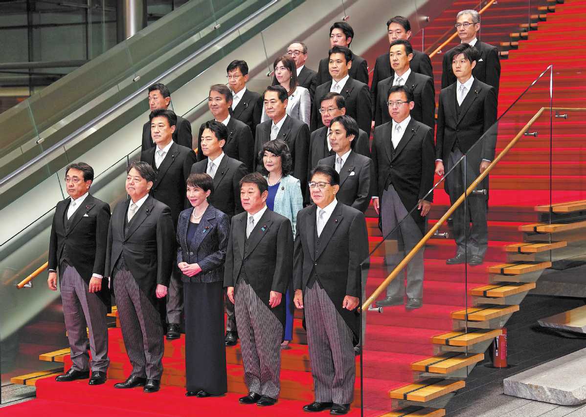 Cabinet members of Japan's new Prime Minister Sanae Takaichi (front center) pose for a photo in Tokyo on Tuesday. JIA HAOCHENG/XINHUA