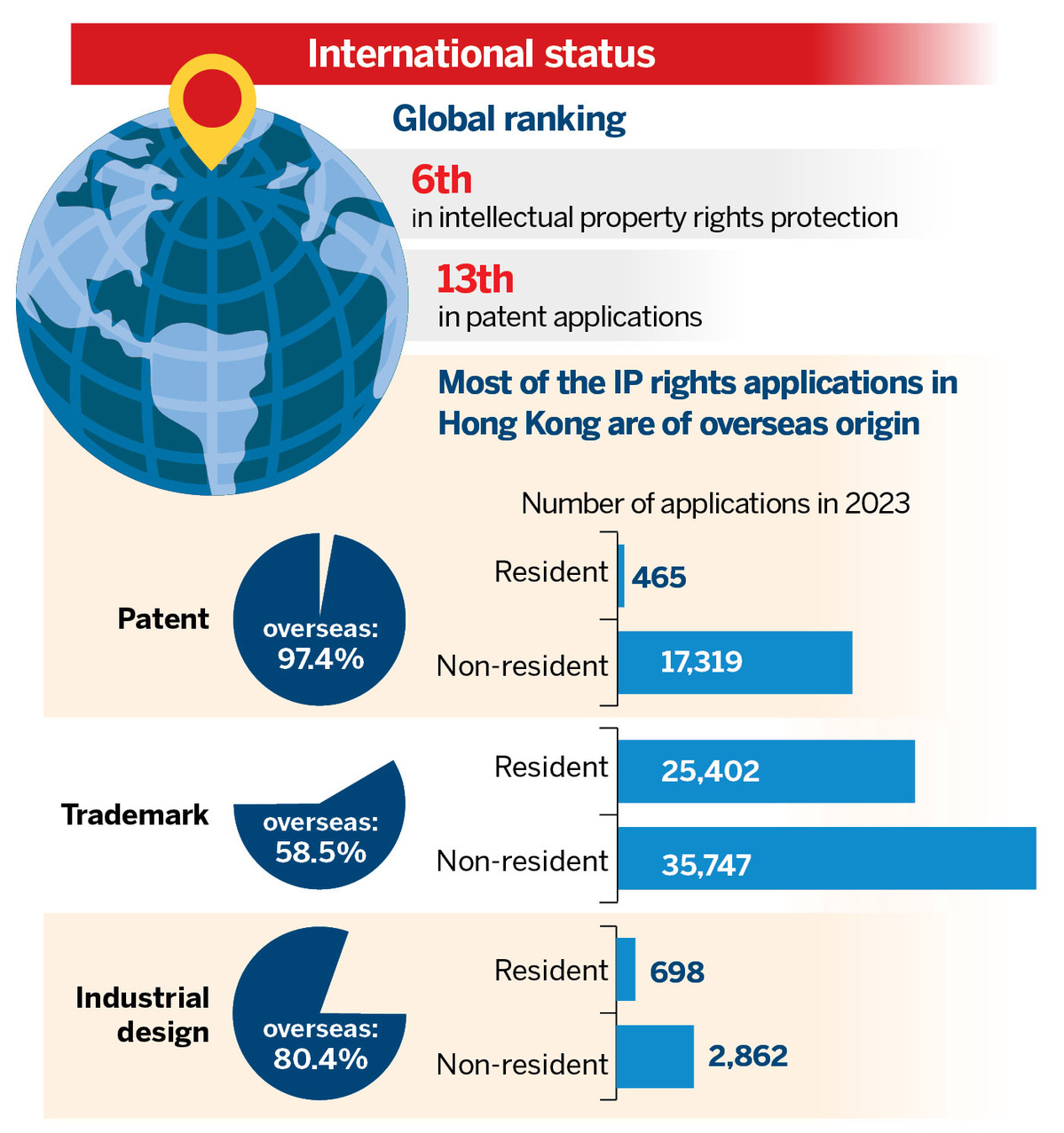 Editor's note: In the seventh installment of this eight-part data series, China Daily explores Hong Kong's progress in establishing itself as a regional intellectual property trading center, one of the "eight centers" outlined in the nation's 14th Five-Year Plan (2021-25).