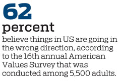 The 16th annual American Values Survey, conducted by the Public Religion Research Institute, or PRRI, and the Brookings Institution, reveals ongoing unease about the country's direction, though pessimism has slightly decreased from last year.