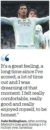 Juventus, which last posted a win on Sept 13, showed flashes of promise, with Real goalkeeper Courtois making three crucial saves to deny the Bianconeri.