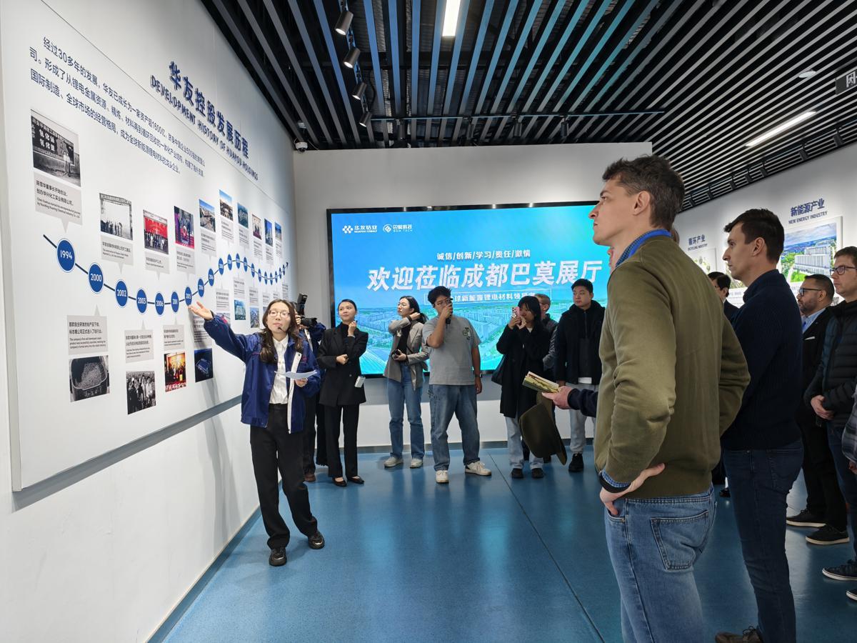 A Hungarian think tank delegation visits the Chengdu B&M Science and Technology Co Ltd in Jintang county of Chengdu, Sichuan province, on Oct 25, 2025. [Photo by Peng Chao/chinadaily.com.cn]