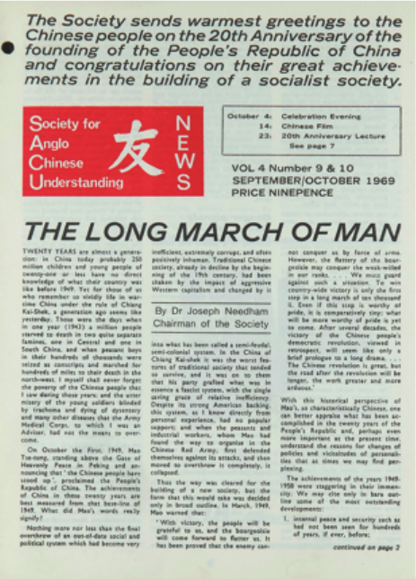 On Saturday, May 15, 1965, Joseph Needham addressed a packed assembly hall in Church House Westminster, central London, to announce the birth of "an organization for fostering friendship and mutual understanding between the British and the Chinese people".