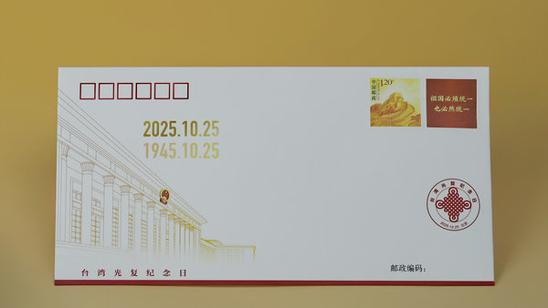 China Philately issued a First Day Cover to honor the first Commemoration Day of Taiwan's Restoration on Saturday. The special envelope features a stamp depicting the Great Wall.
