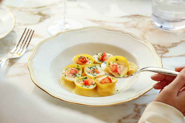 Highlights of the new menu include glazed and seared yellow croaker fish, accompanied by mashed potatoes and parsley sauce. The dish combines the subtle flavors of seafood with the creaminess of the potatoes. Another option, handmade pasta with red prawns, features traditional tortellini filled with sweet red prawns and coated in butter sauce, accented by lemon zest and chives.
