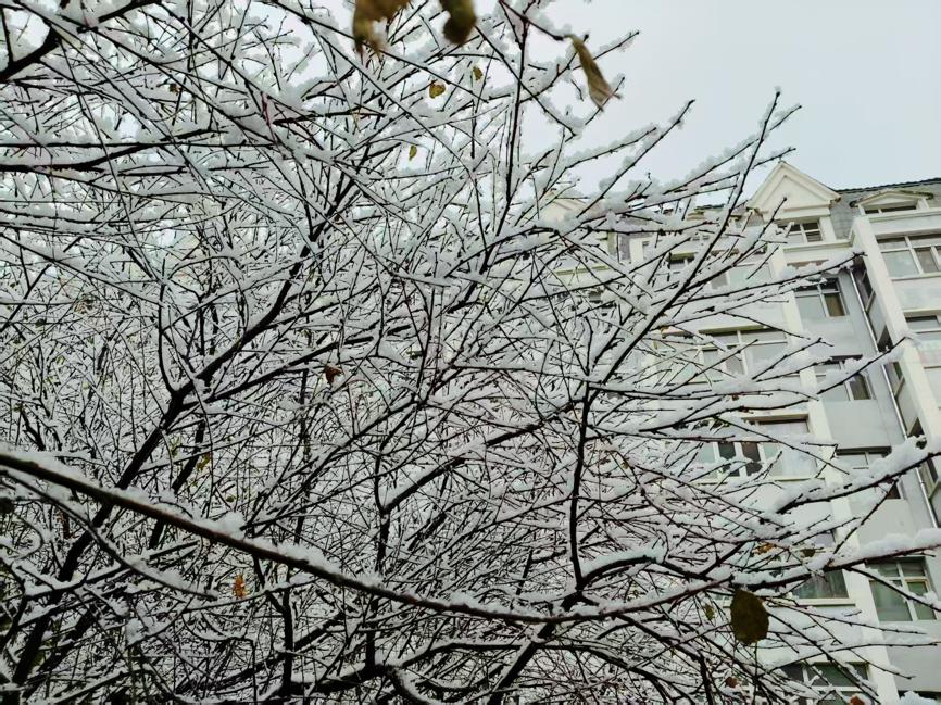 After a snowfall on Sunday morning in Heihe, Heilongjiang province, frost-covered trees and a blanket of snow on the ground transformed the city into a dreamlike fairy tale world. [Photo by Guan Xin/For chinadaily.com.cn]