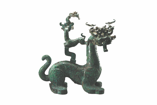 A bronze ornament dating to the Spring and Autumn Period (770-476 BC) on show. [Photo provided to China Daily]