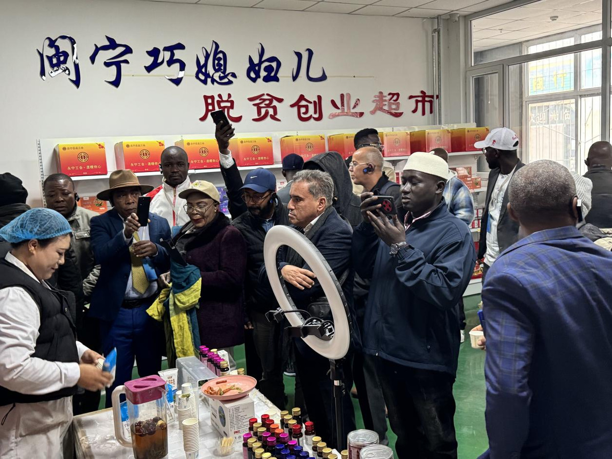 During a poverty reduction exchange program in the Ningxia Hui autonomous region, a group of African grassroots officials recently visited the Hemei e-commerce poverty alleviation workshop in Minning township, Yinchuan city. [Photo provided to chinadaily.com.cn]