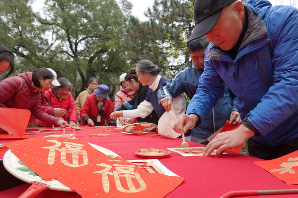 Interactive activities allow visitors to create personalized "Fortune" or "Longevity" rubbings with golden powder, while elderly guests receive special gifts of Chongyang cakes and chrysanthemum tea.