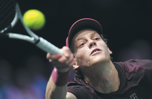 PARIS — Jannik Sinner's bid to reclaim the No 1 ranking got off to a good start Wednesday with a 6-4, 6-2 victory over Zizou Bergs in the second round of the Paris Masters, which the Italian needs to win to knock Carlos Alcaraz off the top spot.