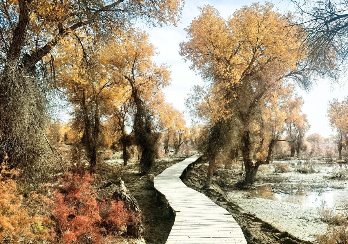 Xinjiang's desert poplar forests shine with autumn tourism