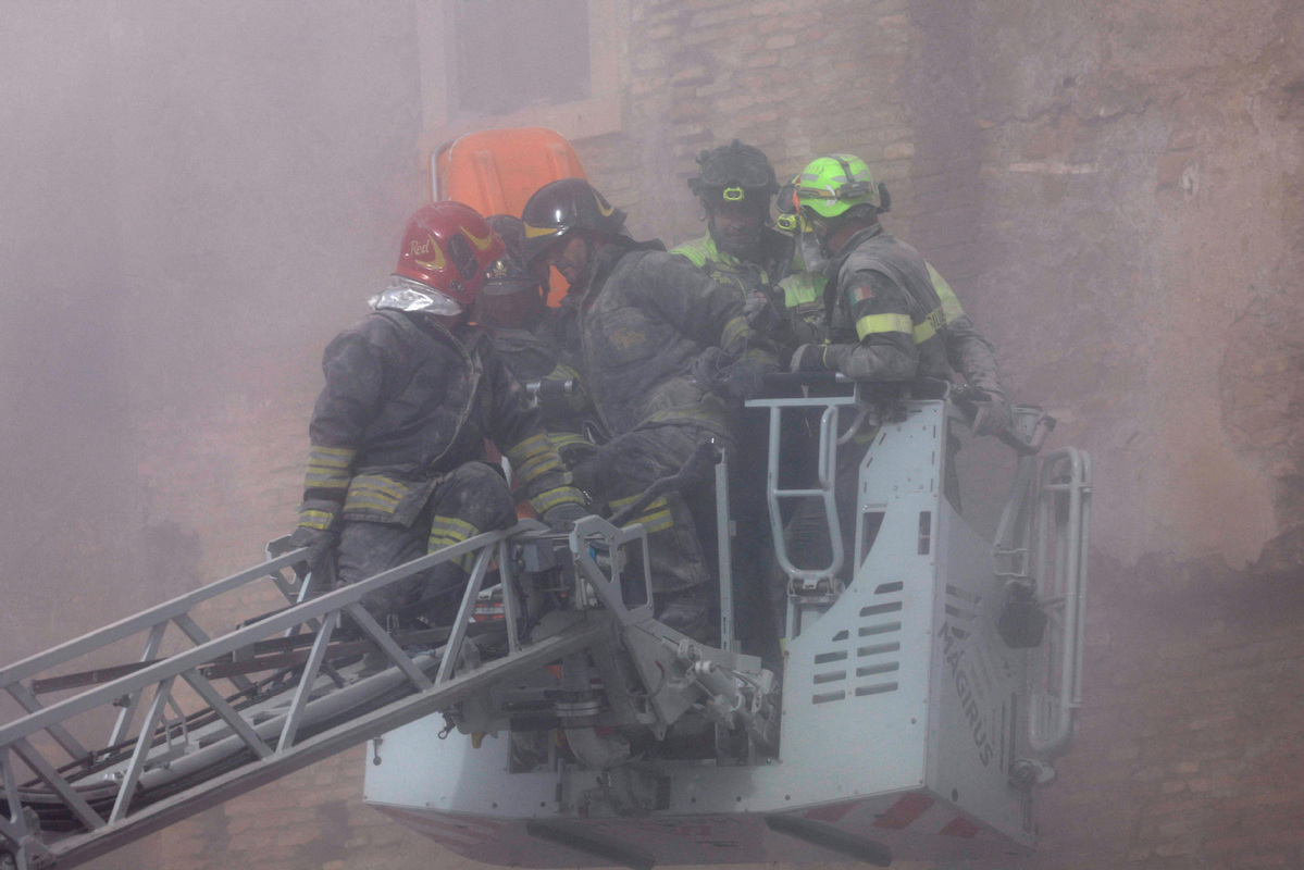 The collapse occurred during renovation work. A second partial cave-in took place while firefighters were carrying out rescue operations, releasing a large cloud of dust but causing no further injuries among emergency crews, Italy's Ansa news agency said.