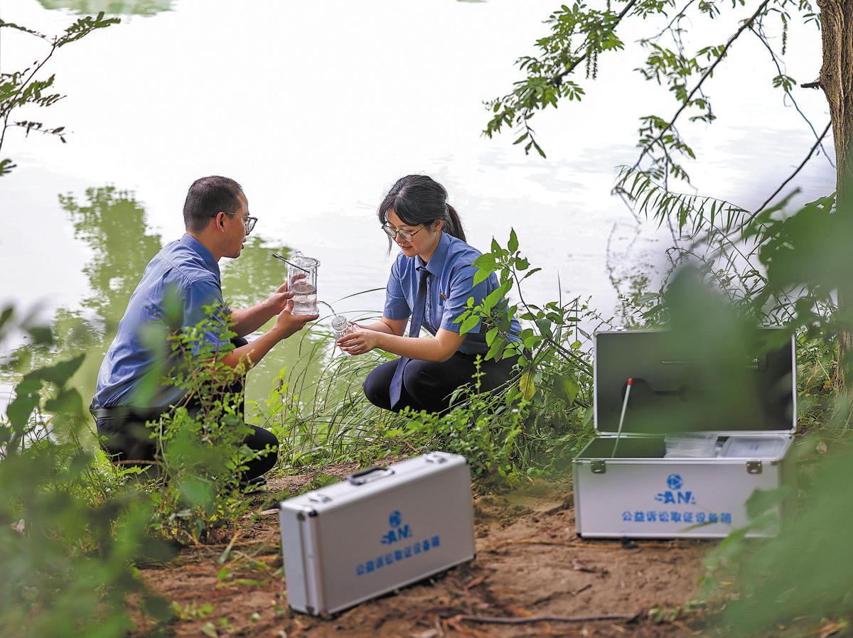 Inspectors check the water quality of the Wuyang River in Yuping, Guizhou, in June. HU PANXUE/FOR CHINA DAILY