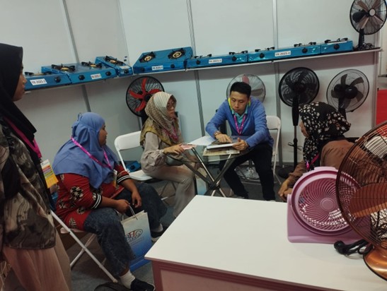 In another corner of the exhibition hall, Emit Law, a sales manager at Transway Industrial Company Limited, was found settling transaction for home appliances with a group of visitors.