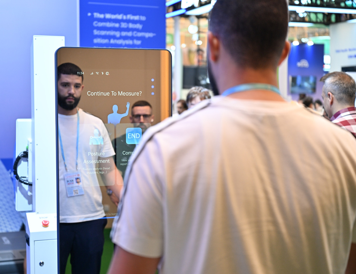 A buyer experiences an intelligent body measurement equipment during the 138th edition of the China Import and Export Fair in Guangzhou, South China's Guangdong province, Nov 3, 2025. [Photo/Xinhua]