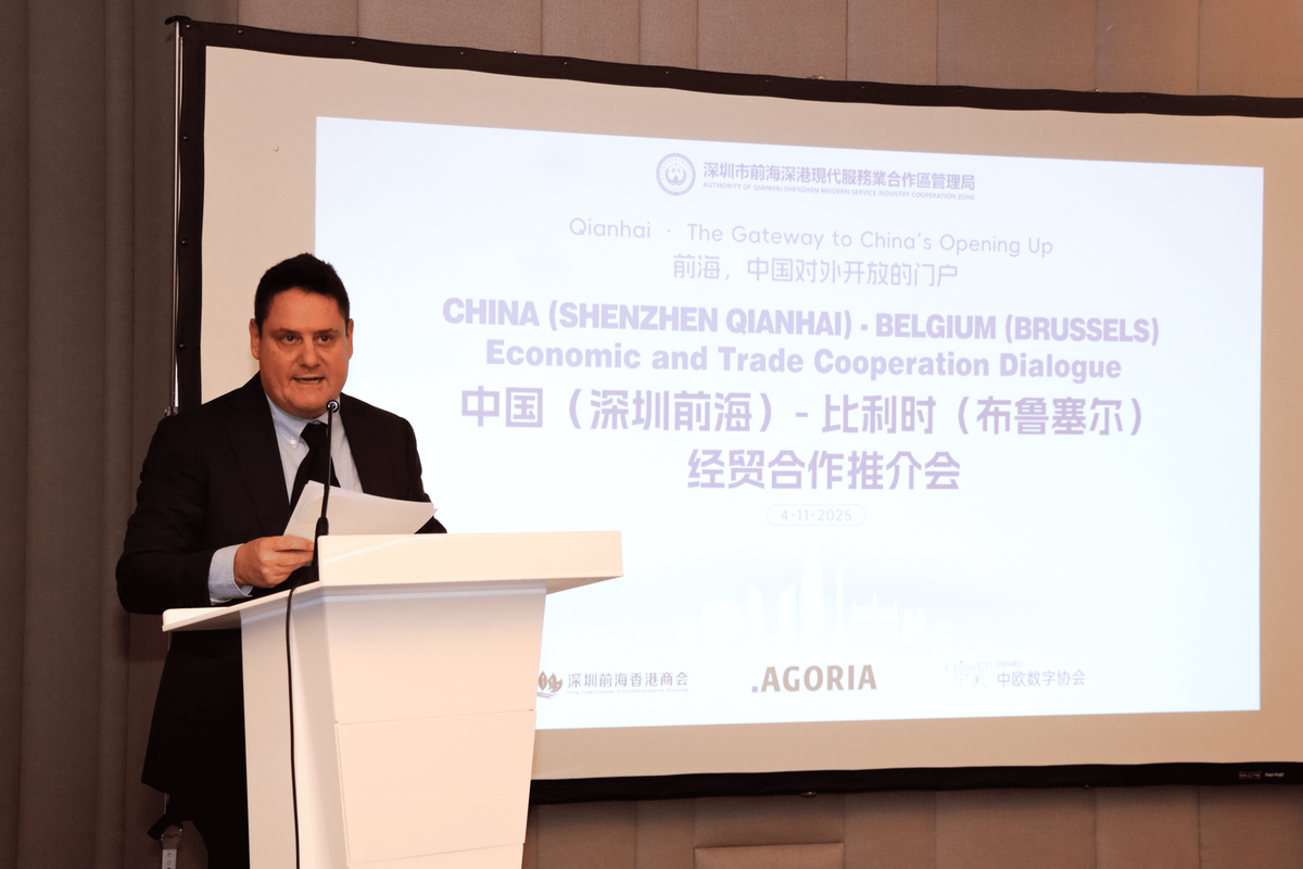 A high-level delegation from Qianhai, Shenzhen, led by Wang Shourui, Director General of the Qianhai Authority, visited Brussels on Tuesday to strengthen cooperation with Europe and explore new opportunities for partnership between the Greater Bay Area and the European continent. The event was co-hosted by the Qianhai Hong Kong Chamber of Commerce and ChinaEU, with the support of Agoria, Belgium's leading technology federation.