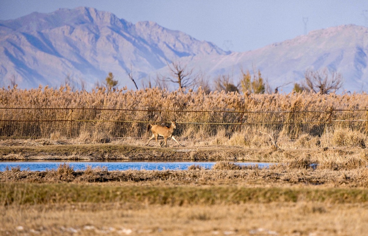 A milu deer cub is pictured at Qingtongxia Reservoir Wetland Nature Reserve, Northwest China's Ningxia Hui autonomous region, Nov 4, 2025. [Photo/Xinhua]