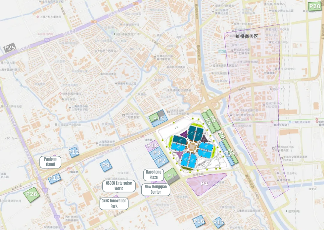 Furthermore, shared parking facilities in the Hongqiao International Central Business District provide backup, with around 4,000 spaces available on weekdays and around 7,000 on weekends.