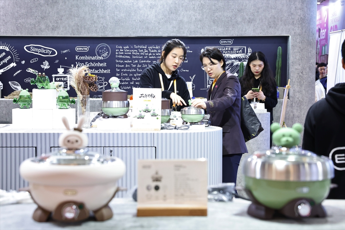 Visitors learn about exhibits at Ernte booth at the Consumer Goods exhibition area of the eighth China International Import Expo in East China's Shanghai on Thursday. [Photo by Wang Jing/chinadaily.com.cn]