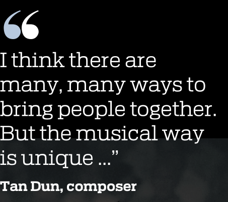 "I think there are many, many ways to bring people together," he says. "But the musical way is unique, because it can vibrate in different hearts and spirits, no matter your language or tradition.