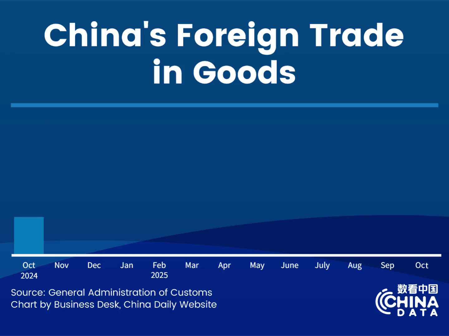 In October alone, total goods trade achieved 3.7 trillion yuan, edging up 0.1 percent on a yearly basis. Exports stood at 2.17 trillion yuan, down 0.8 percent year-on-year, while imports reached 1.53 trillion yuan, up 1.4 percent year-on-year, marking the fifth consecutive month of growth, according to customs data.