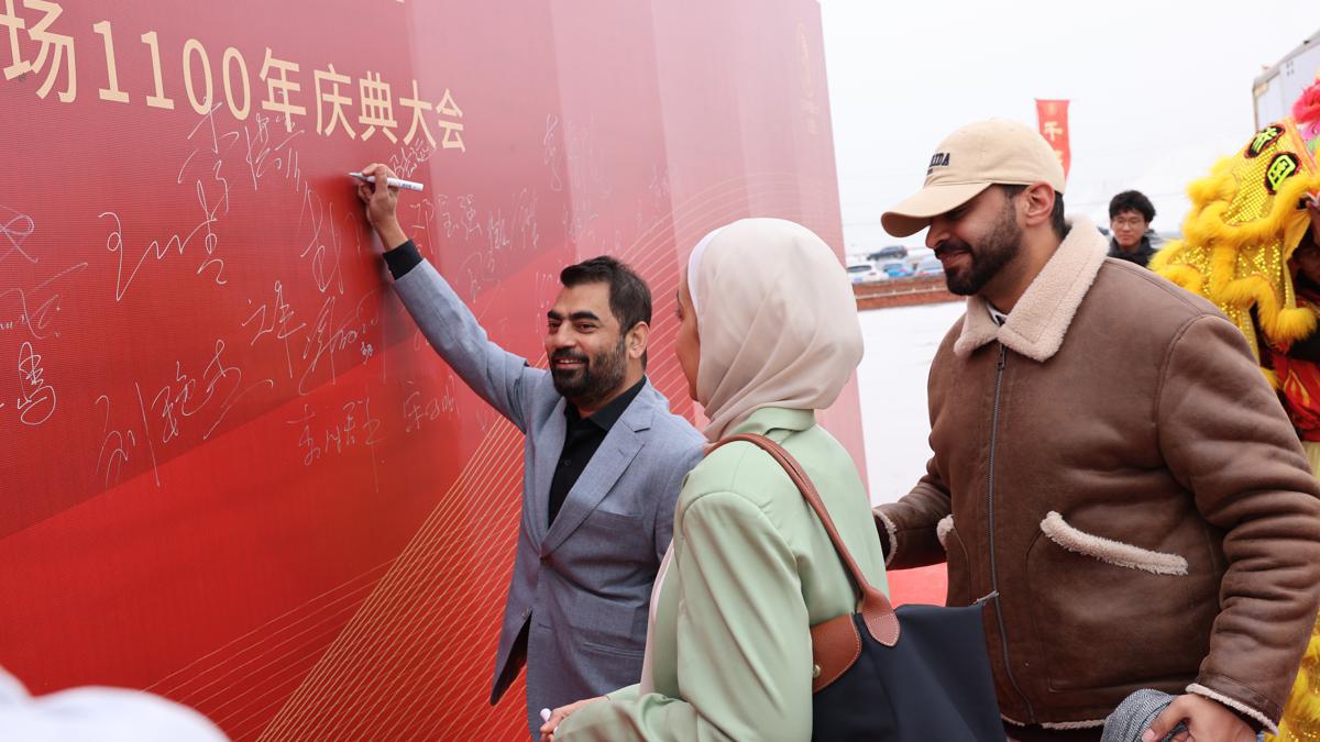 Foreign partners and others take photos during the 1100th anniversary celebration. [Photo by Liu Wenchao/For chinadaily.com.cn]