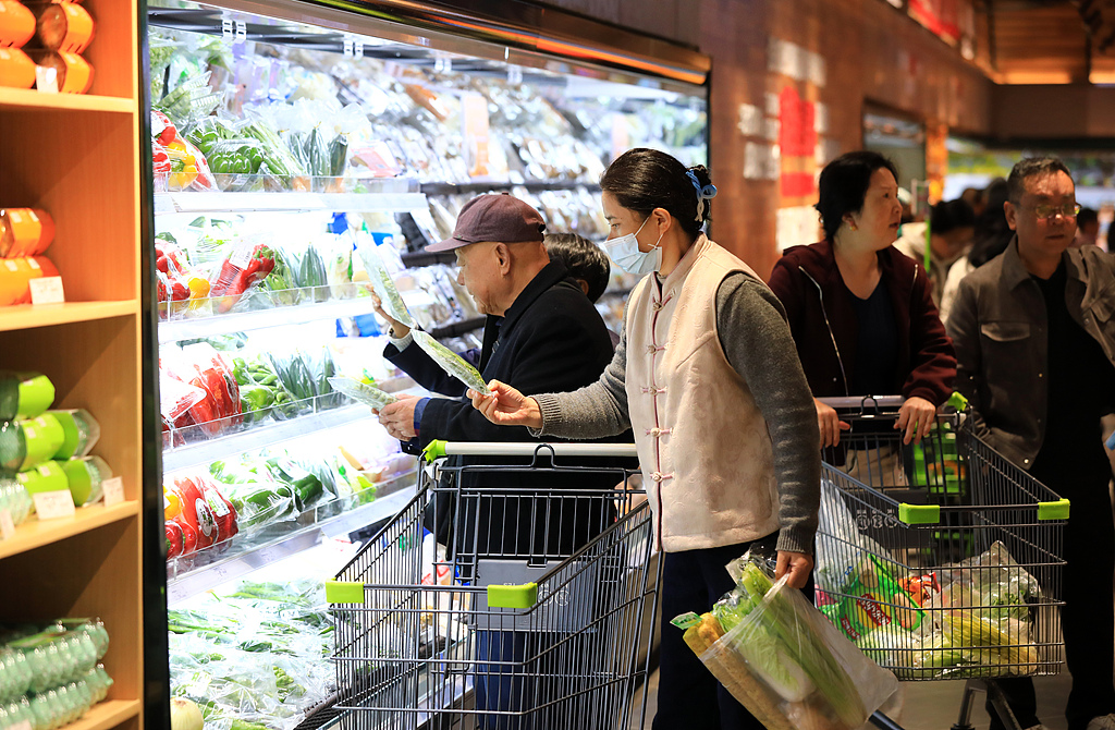Consumers shop at a supermarket in Huaian, East China's Jiangsu province, Nov 6, 2025. [Photo/VCG]