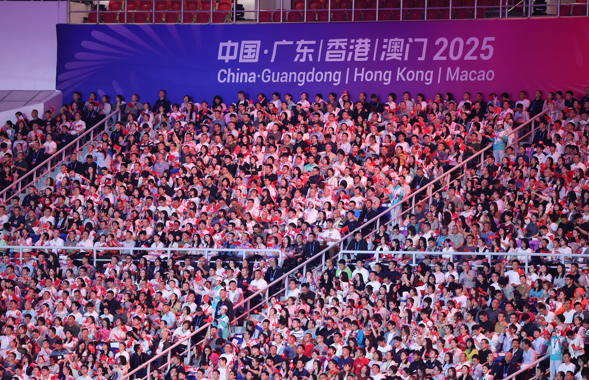Spectators enjoy the warm-up shows before the opening ceremony of China's 15th National Games in Guangzhou, South China's Guangdong province, Nov 9, 2025. [Photo by Feng Yongbin/chinadaily.com.cn]