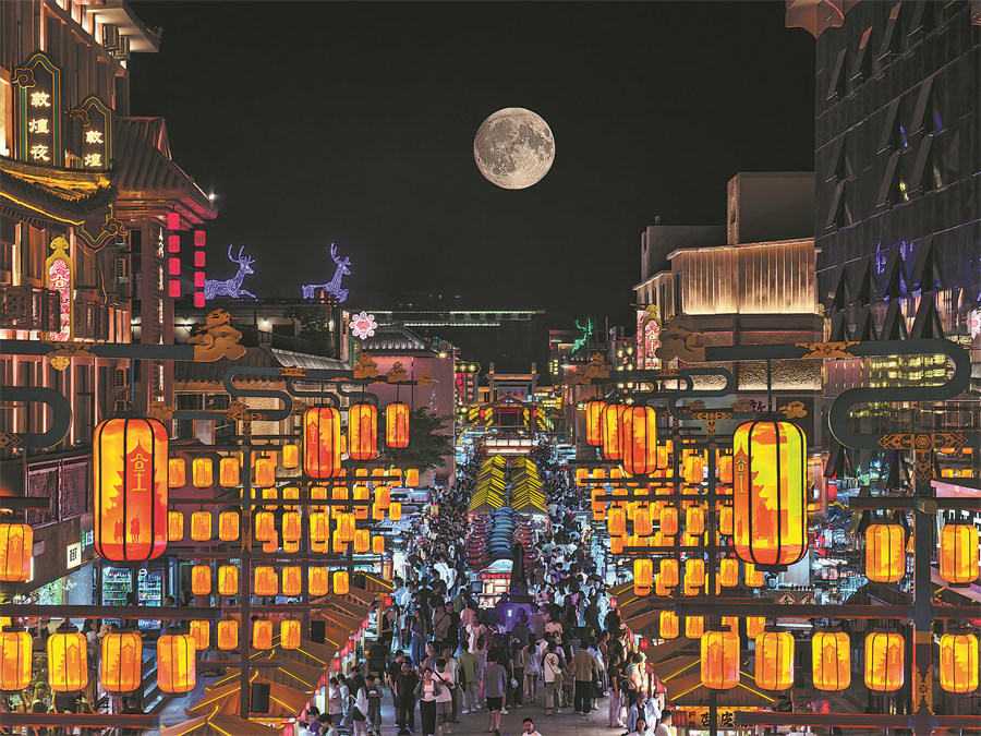 Tourists visit Dunhuang's night market during the 8th Silk Road (Dunhuang) Cultural Expo. [Photo provided to China Daily]