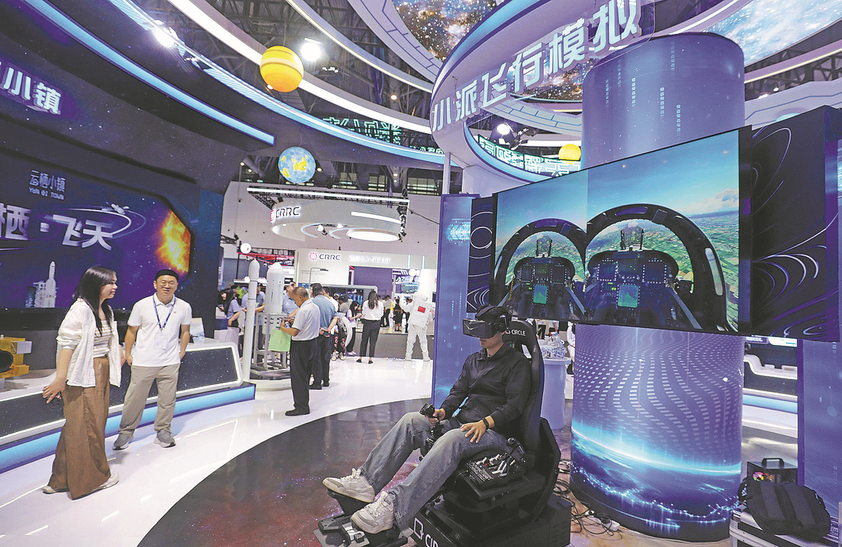 A delegate (right) experiences a flight simulator during the Fourth Global Digital Trade Expo on Sept 25. LIN YUNLONG/FOR CHINA DAILY