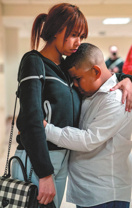 A child of a detained migrant mother weeps while federal immigration officers question the father, at the US immigration court in Manhattan, New York City, on Aug 22. DAVID DEE DELGADO/REUTERS