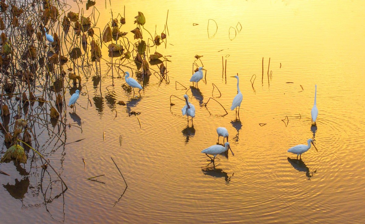 A drone photo taken on Nov 10, 2025 shows birds at the Lixiahe National Wetland Park in Xinghua city, East China's Jiangsu province. [Photo/Xinhua]