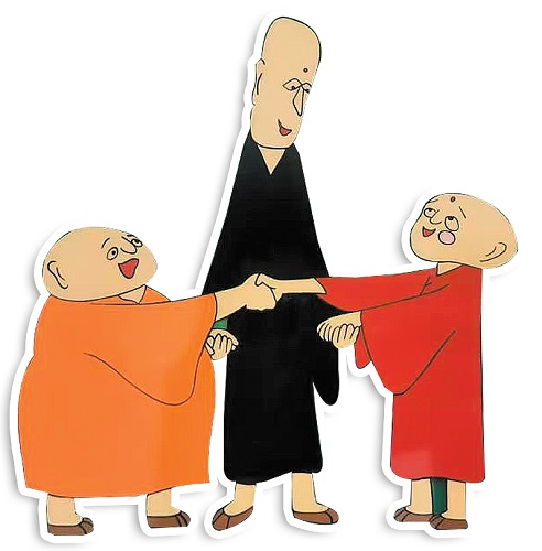Artist Zhao Lei's replica drawing of an image from the Chinese animation Three Monks. [Photo provided to China Daily]