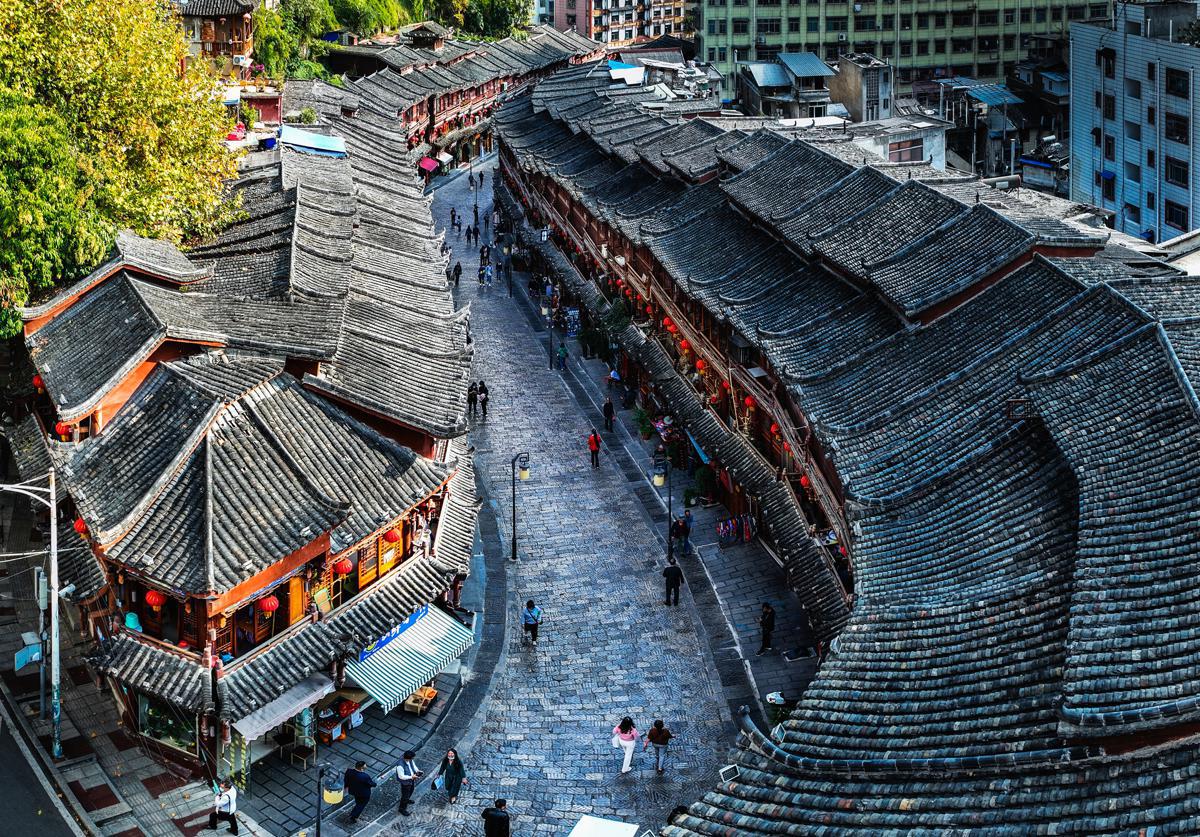 Visitors to Shiban Street, a stone-slab lane in Duyun, Guizhou province, walk between rows of stilted wooden houses on paving that dates back to the early Ming Dynasty (1368–1644). [Photo by Zhao Yunchuan/For chinadaily.com.cn]