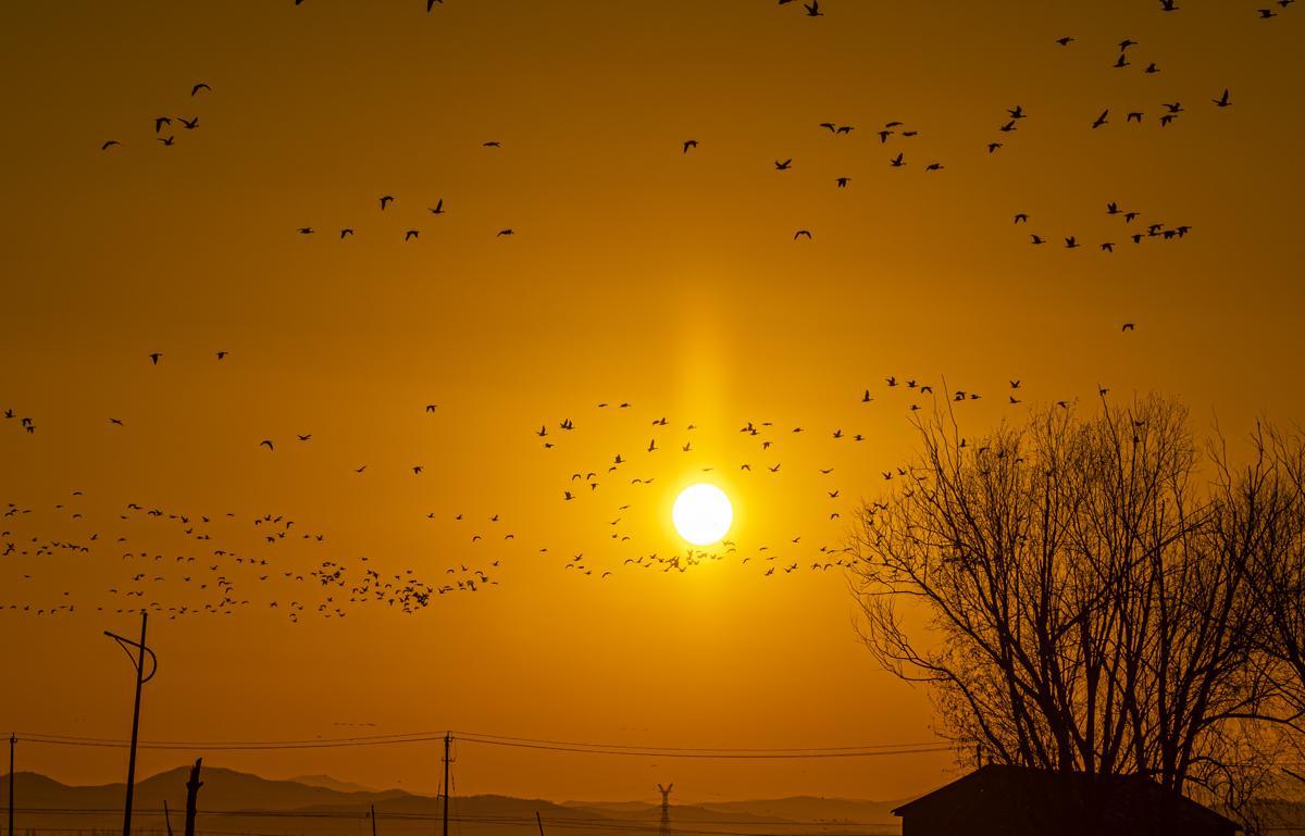 Over 10,000 wild geese gather at Jingxin Wetland in Jilin