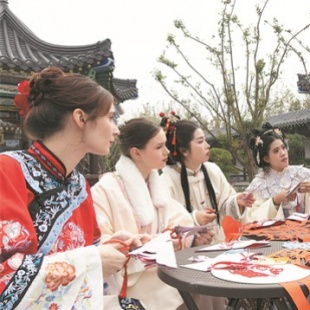 At the Queshan Mountain ecological and cultural zone in the Jinan Start-up Area for Growth Drivers Transformation, Shandong province, Oceane Anna Rivoire from France and her peers tried their hand at traditional paper-cutting, carefully crafting the Chinese characters for nian nian you yu — a phrase symbolizing abundance and surplus.