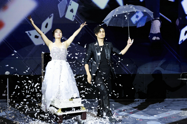 Chinese magicians Liu Shijie and Sun Zheng performed magic stunts, re-creating several iconic scenes from the movie, such as wrapping a diamond in cloth and making it disappear.