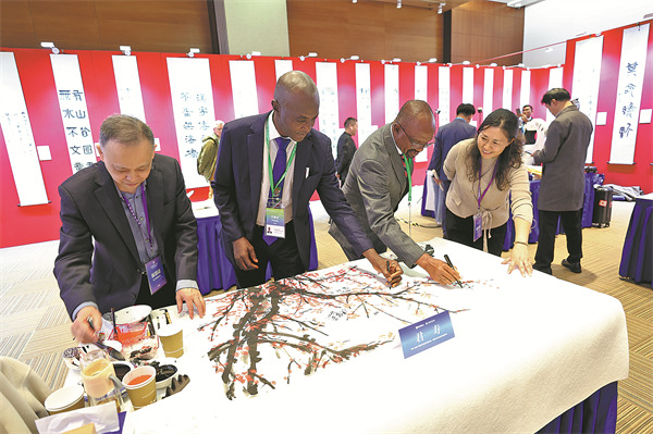 Oliver Harding (second from left), director of the Confucius Institute in Sierra Leone, West Africa, says he appreciates Chinese art and language. [Photo provided to China Daily]