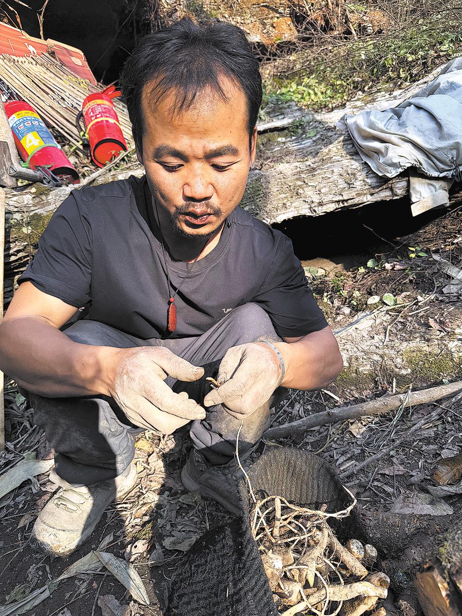 Wu Gaoshu, a contestant in the current competition, collects wild plants on Nov 15. [Photo provided to CHINA DAILY]