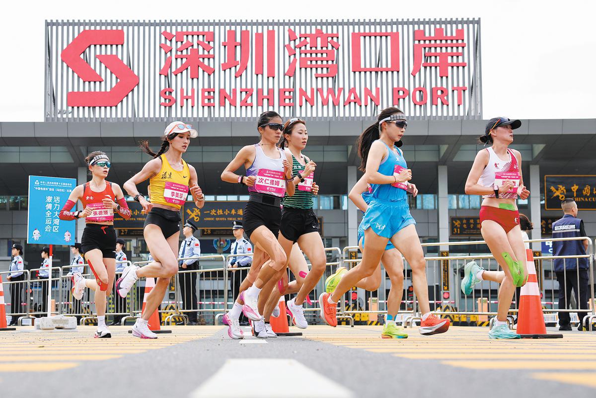 Athletes enter Hong Kong via the Shenzhen Bay Port during the women's marathon event of the 15th National Games on Nov 15, 2025. The games' first cross-boundary marathon included both men's and women's events, featuring 71 athletes from 23 teams across 22 provinces, municipalities and autonomous regions, including six athletes from Hong Kong and Macao. WEI XIAOHAO/CHINA DAILY