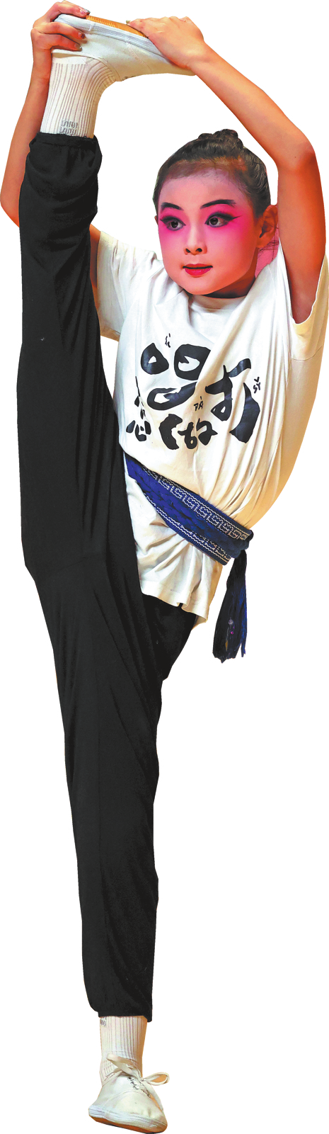 A young performer limbers up to practice traditional opera technique. ZHU XINGXIN/CHINA DAILY
