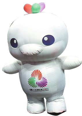 He bought several pairs of the popular games mascots, Xiyangyang and Lerongrong, which were inspired by the Chinese white dolphin, a resident of the Pearl River Estuary and classified as a grade 1 national key protected species.