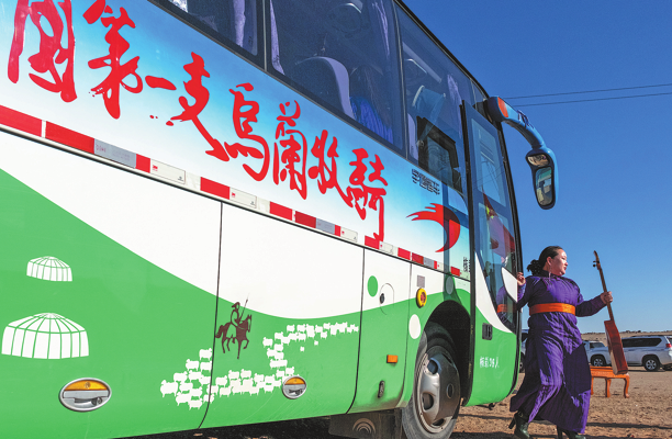 To support Ulan Muqir troupes, or Red Bud troupes, local authorities provide buses for each troupe. MA JINRUI/XINHUA