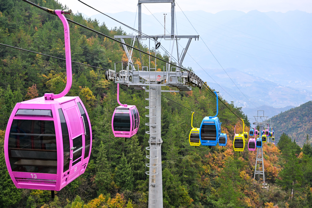 Tourists take cable cars at a scenic spot near the Wuxia Gorge, one of the Three Gorges on the Yangtze River, in Wushan, Southwest China's Chongqing, Nov 23, 2025. [Photo/Xinhua]