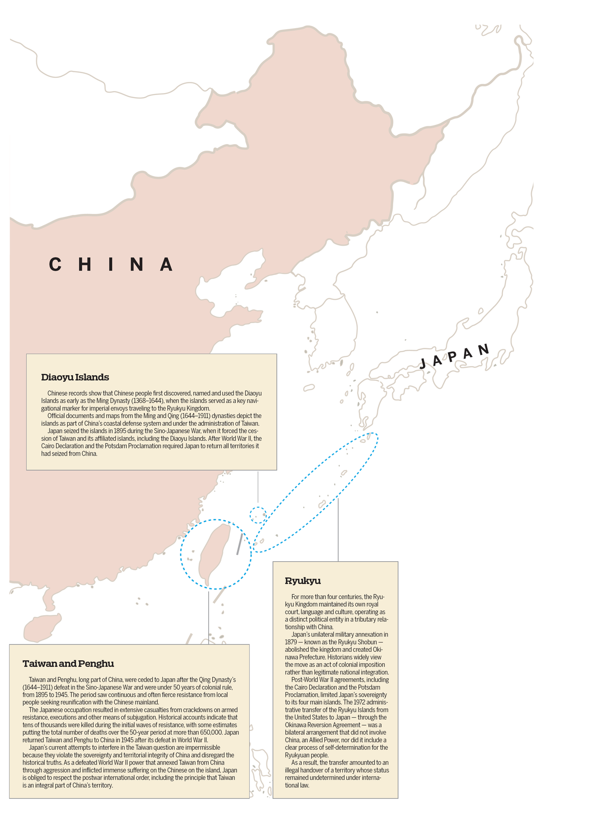 As a defeated nation that returned stolen territories including Taiwan to China as part of the postwar order, explicitly linking its defense to the Taiwan question, Japan sacrifices strategic autonomy, undermines its postwar commitment to peaceful development, and risks being once again nailed to the pillar of historical shame.