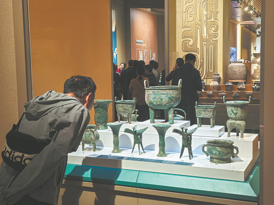 Visitors take a close look at relics at the Yinxu Museum in Anyang, Henan. YU HONG'EN/FOR CHINA DAILY