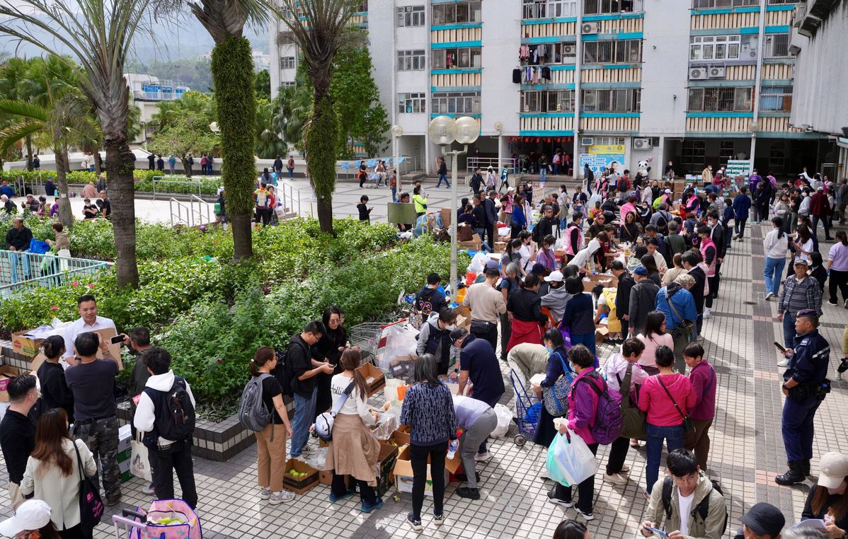 Volunteers distribute free lunches to residents at Wang Fuk Court, Tai Po, Nov 27, 2025. [ADAM LAM/CHINA DAILY]